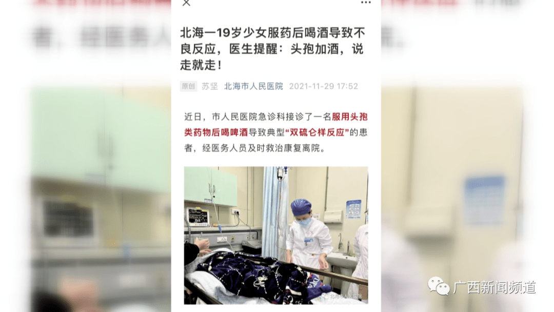 【北海|吃了头孢后喝酒,广西一女子住进医院!医生紧急提醒...】?内容来源:广西新闻频道(版权归原作者所有 , 如有侵权请联系删除)